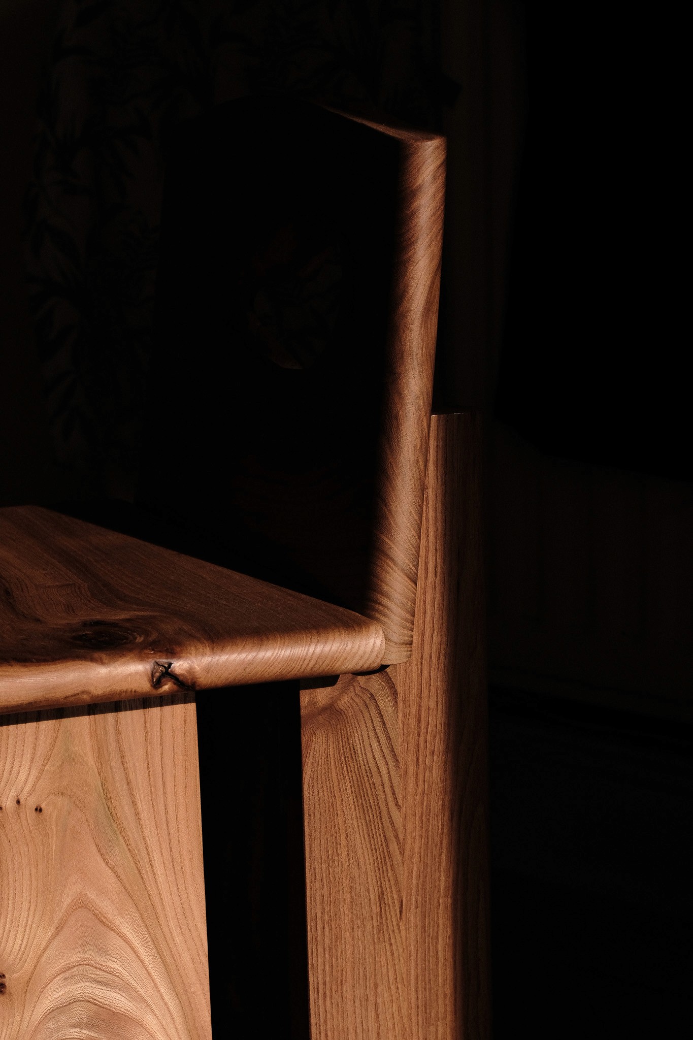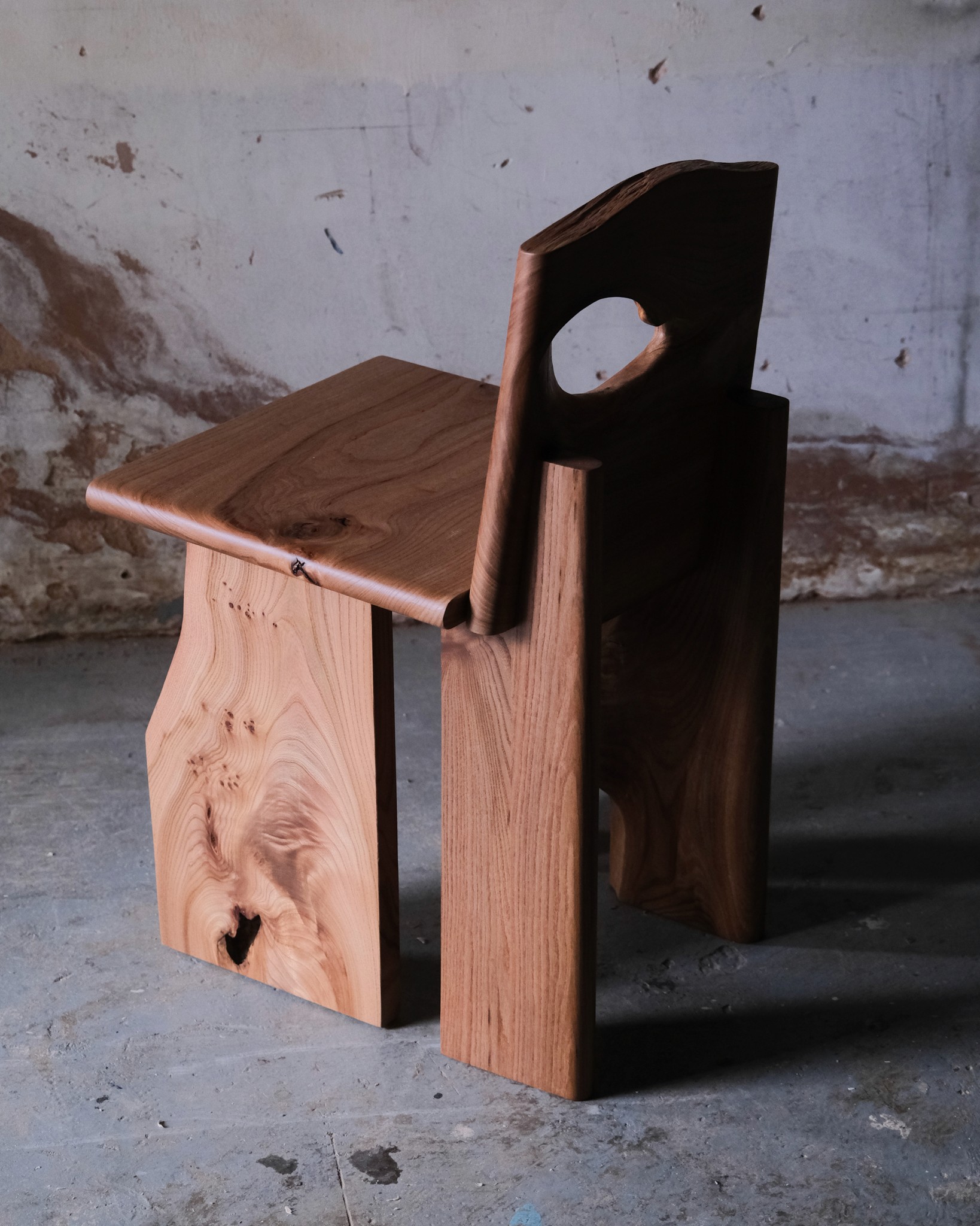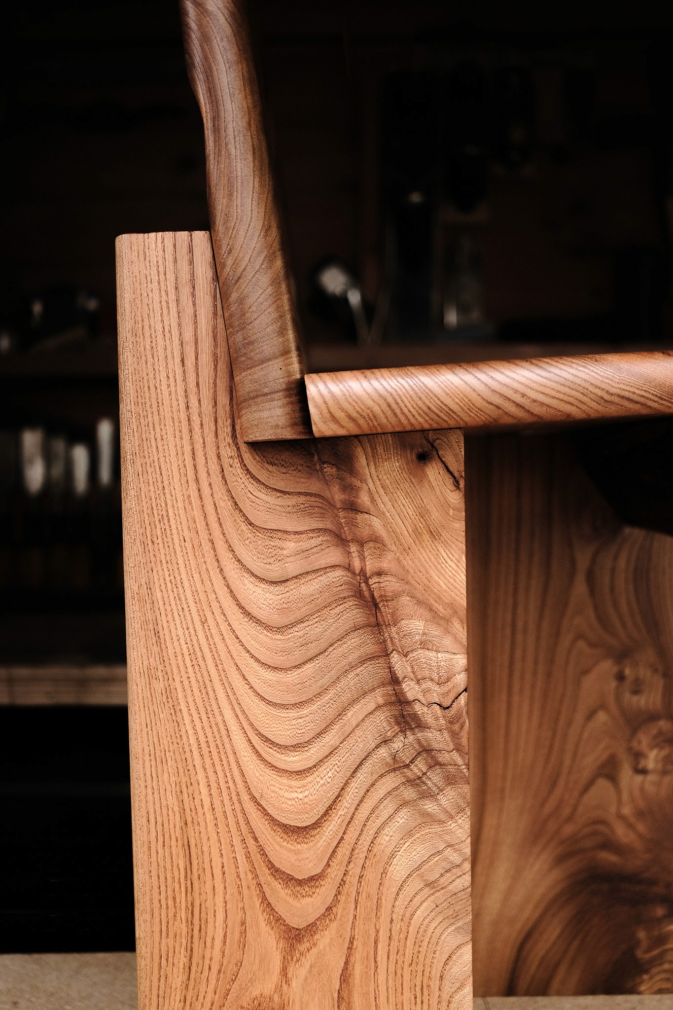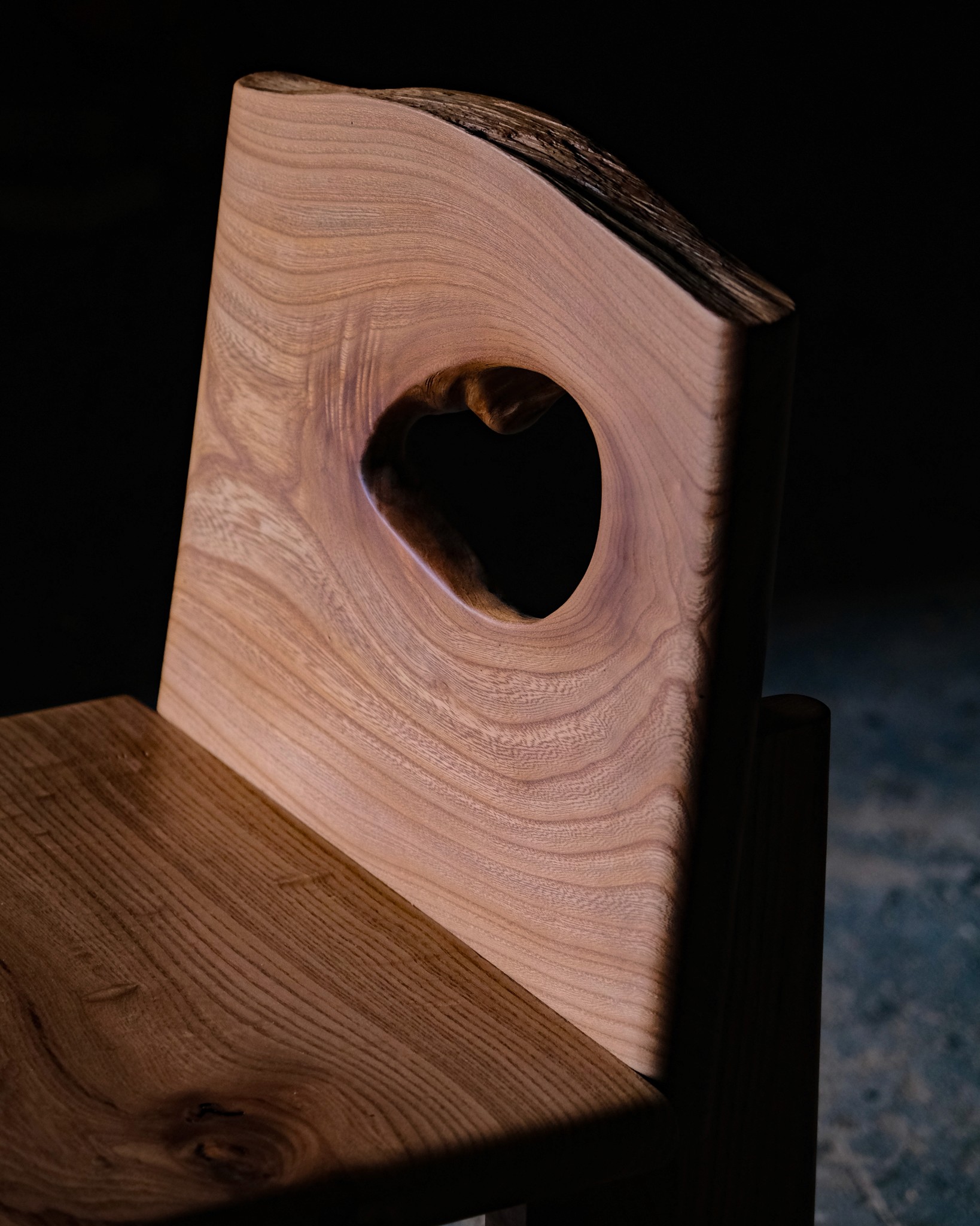 This chair is a unique blend of nature and craftsmanship. Made from Elm offcuts initially deemed 'too defective' due to Dutch Elm Disease, this chair showcases the natural cavities and undulations caused by the rot. This one-of-a-kind piece is part of a collection which is being designed to celebrate the raw beauty of Elm, and raise awareness about the 25 million+ Elm trees lost to Dutch Elm Disease since the 1960s.
