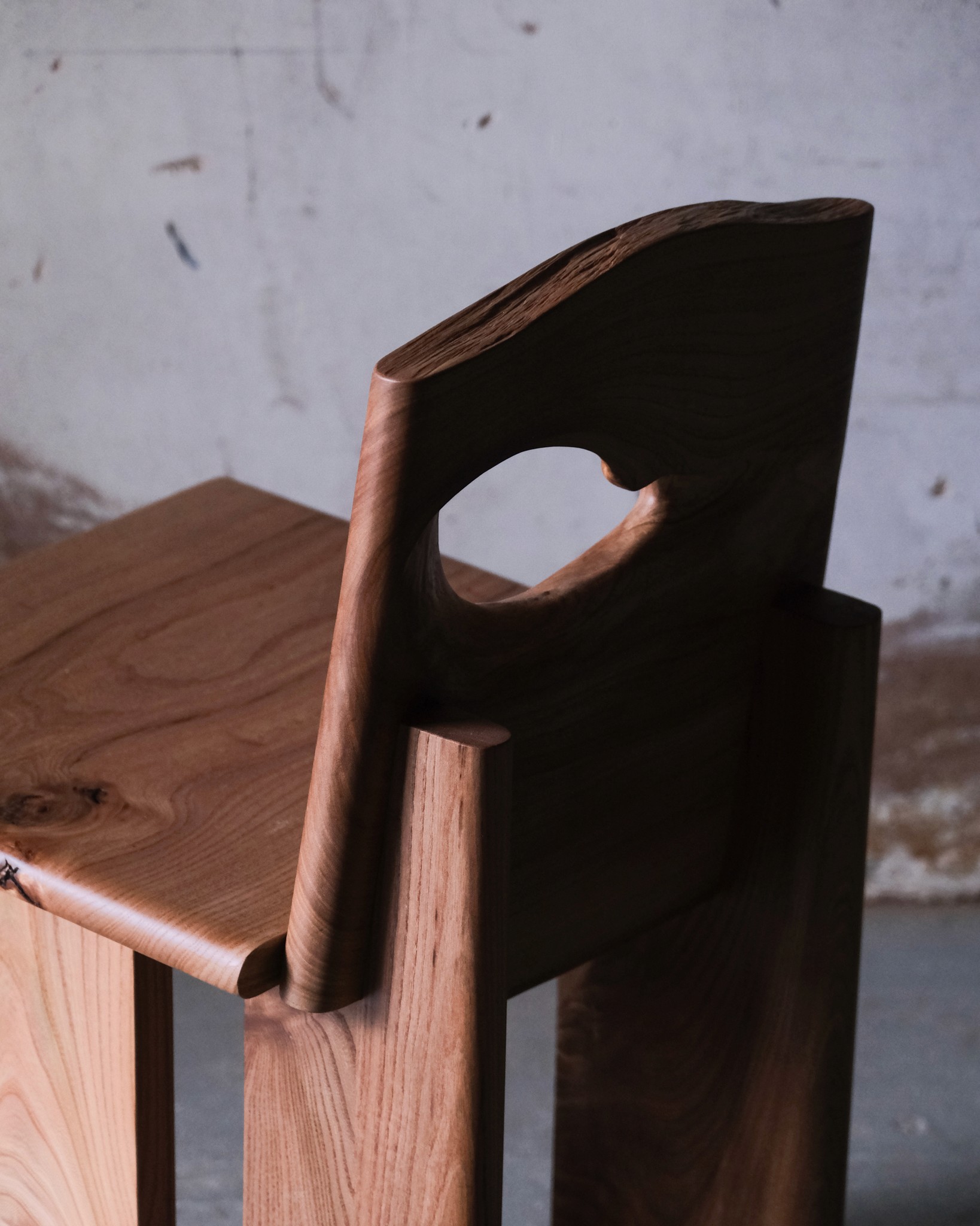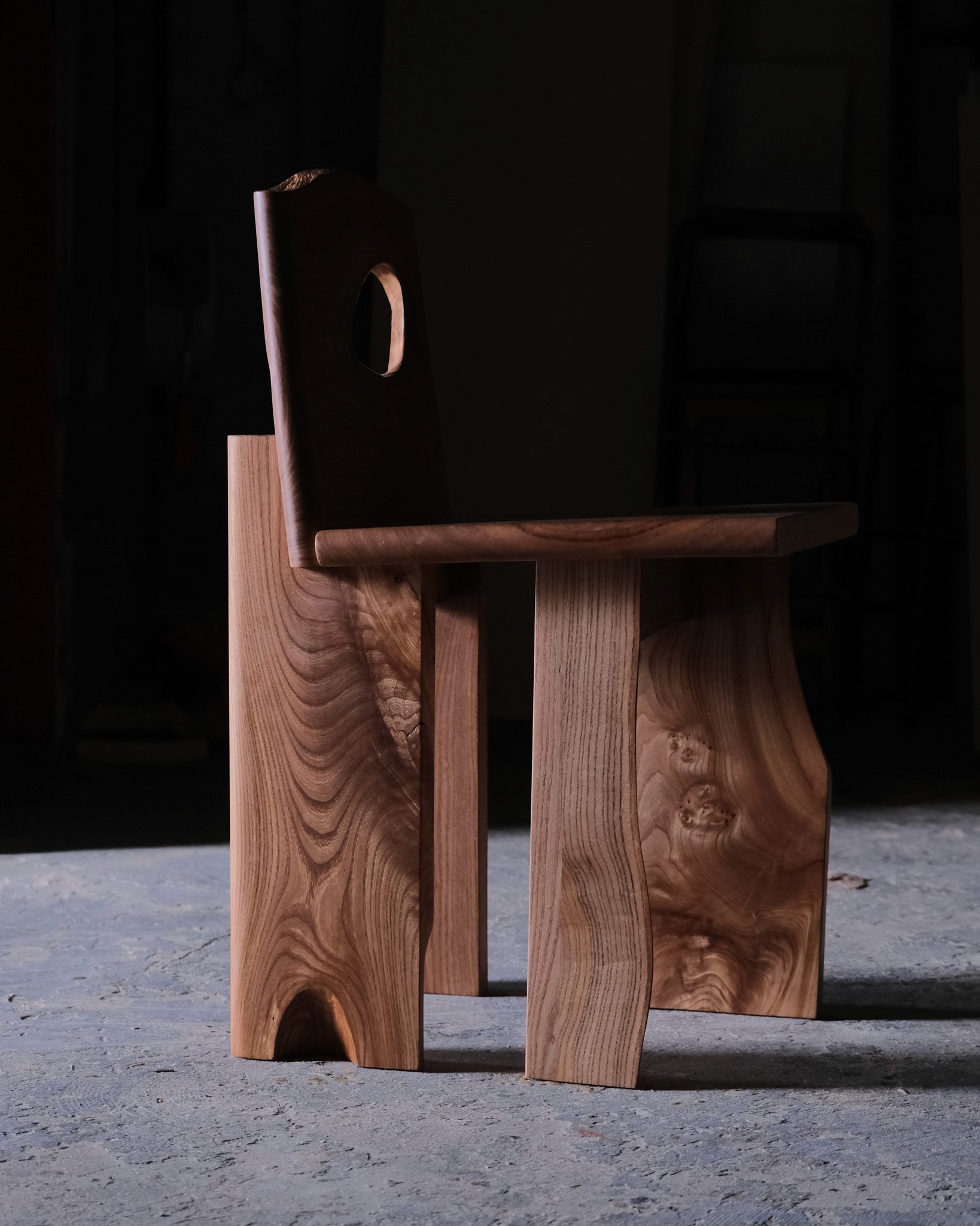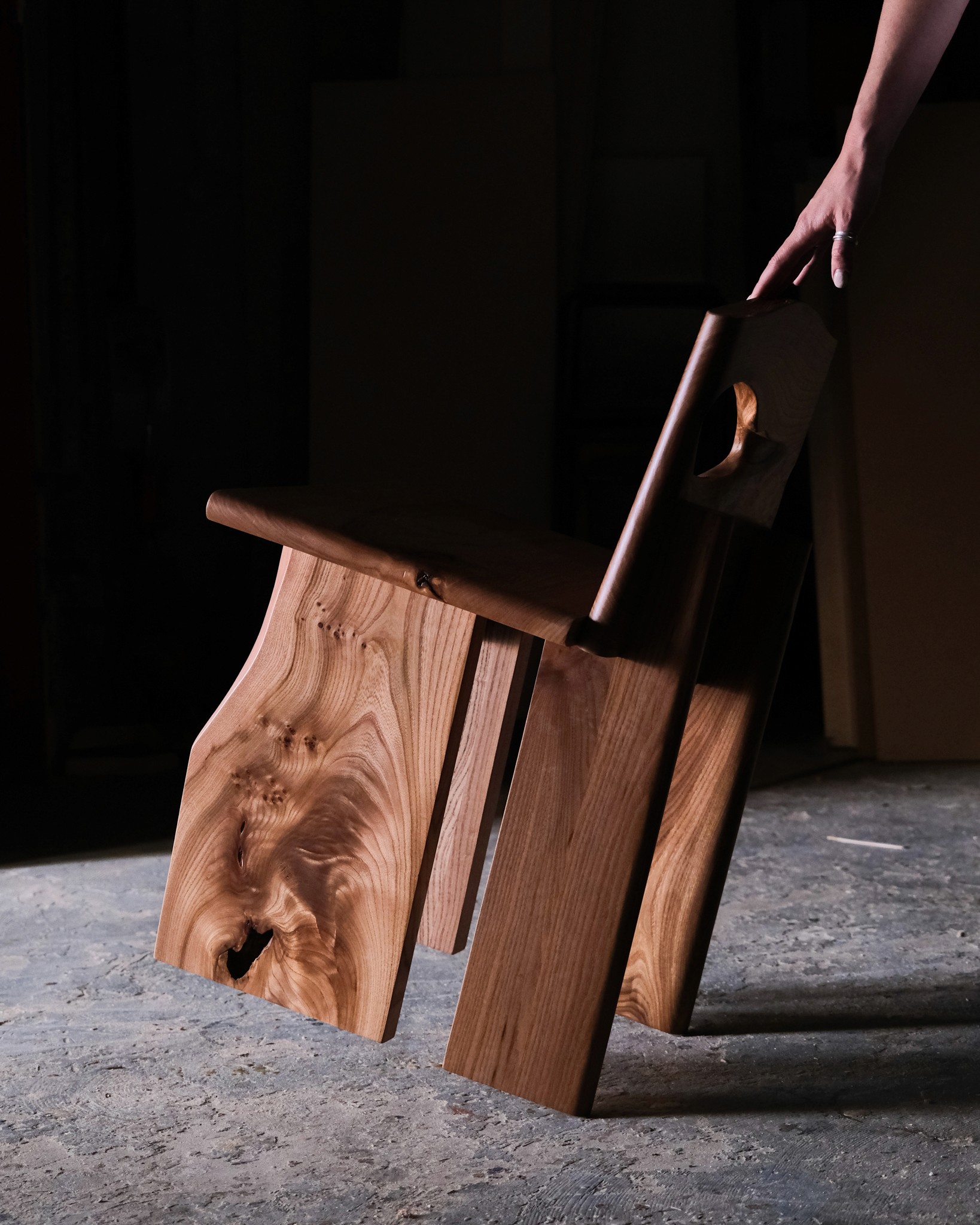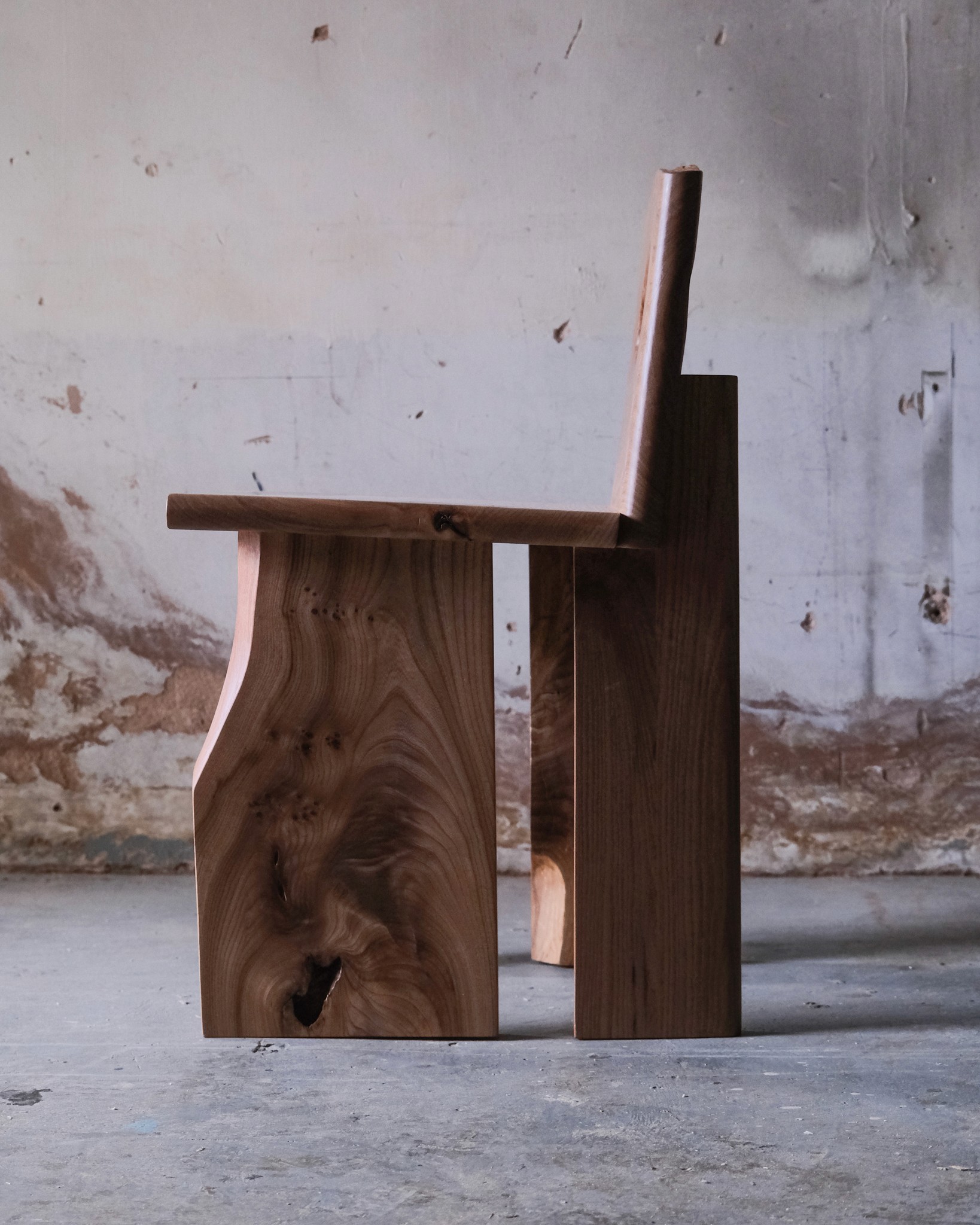 This chair is a unique blend of nature and craftsmanship. Made from Elm offcuts initially deemed 'too defective' due to Dutch Elm Disease, this chair showcases the natural cavities and undulations caused by the rot. This one-of-a-kind piece is part of a collection which is being designed to celebrate the raw beauty of Elm, and raise awareness about the 25 million+ Elm trees lost to Dutch Elm Disease since the 1960s.