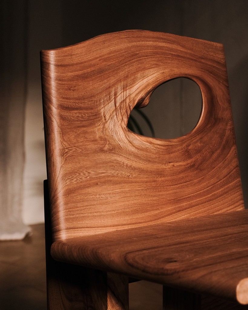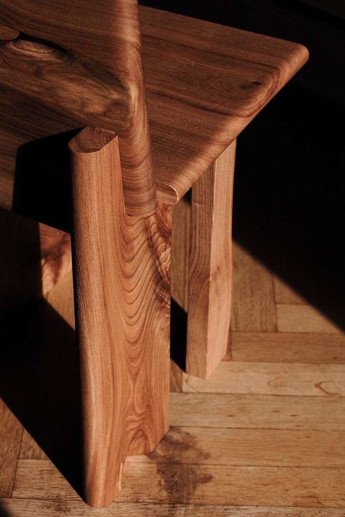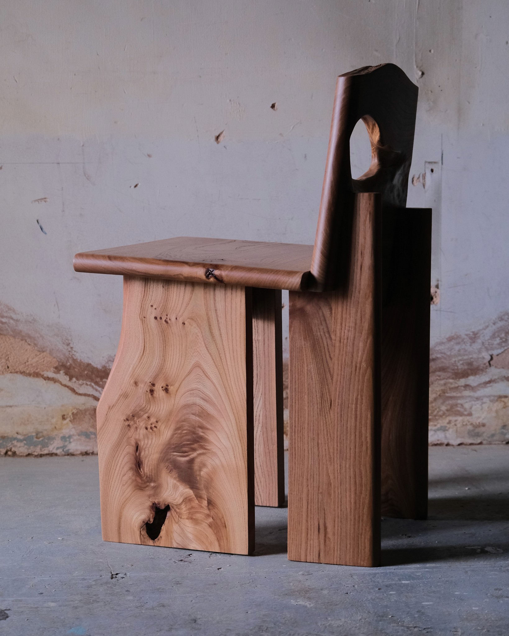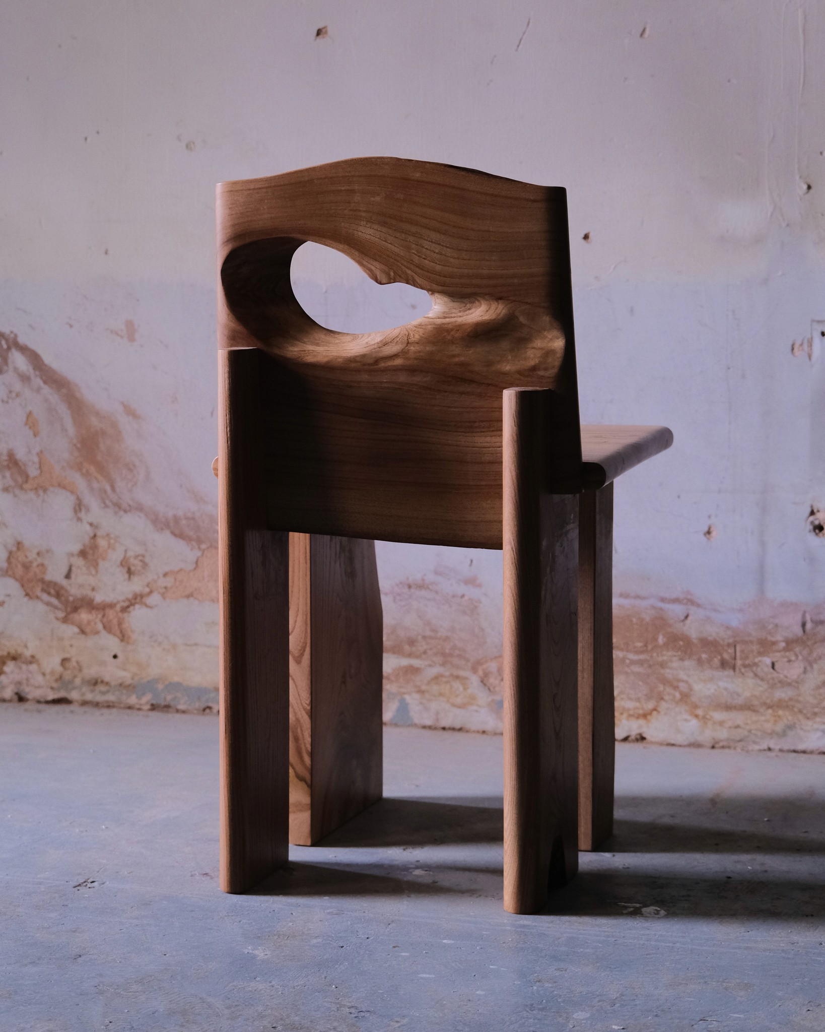 This chair is a unique blend of nature and craftsmanship. Made from Elm offcuts initially deemed 'too defective' due to Dutch Elm Disease, this chair showcases the natural cavities and undulations caused by the rot. This one-of-a-kind piece is part of a collection which is being designed to celebrate the raw beauty of Elm, and raise awareness about the 25 million+ Elm trees lost to Dutch Elm Disease since the 1960s.